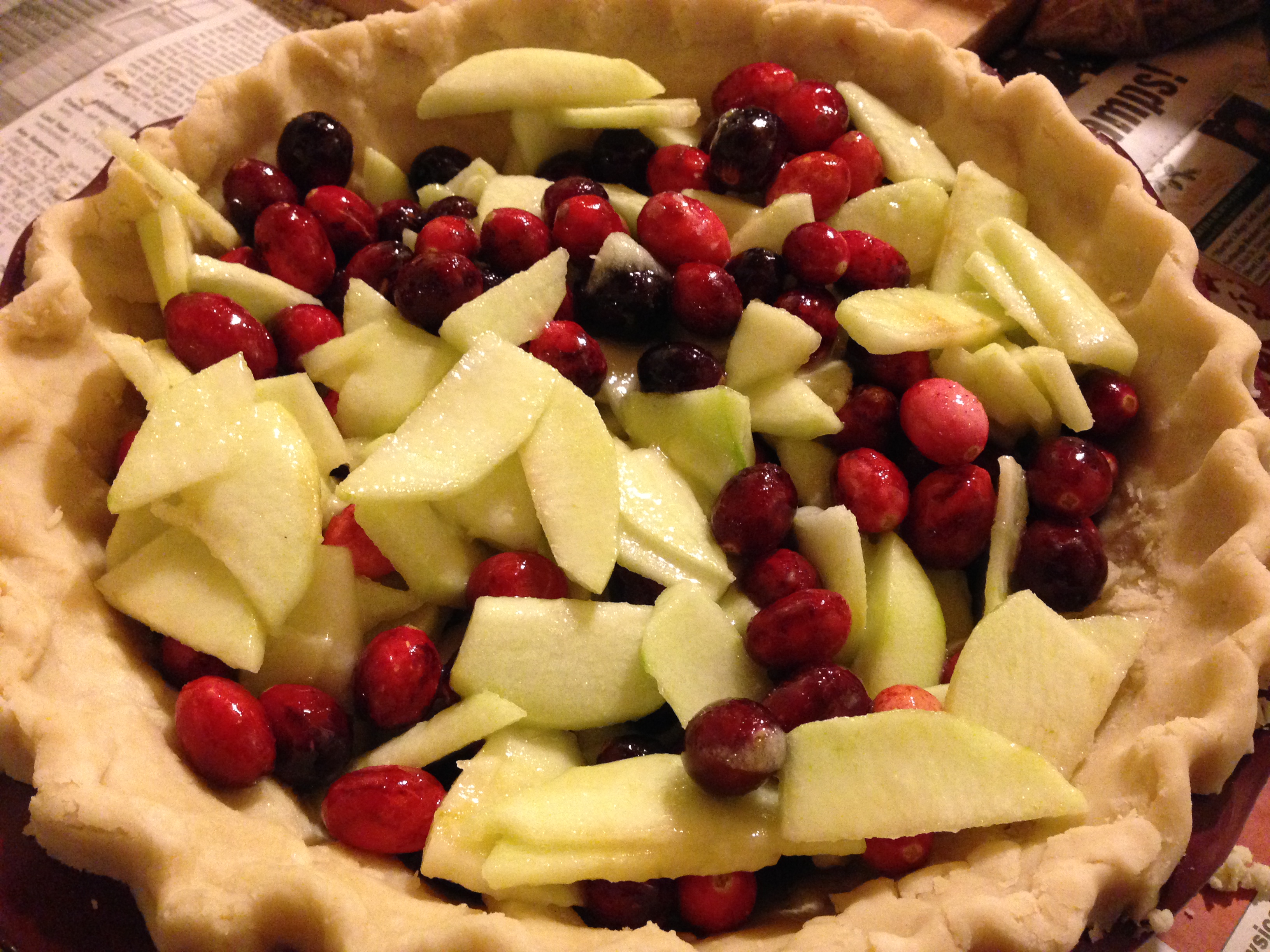 In between life chats, we managed to squeeze in a little pie-making for the family dinner on Turkey Day. I came across a recipe for Cranberry-Apple Pie a while ago, and thought it sounded perfect– you still have the classic apple pie taste going on, but it gets a fresh and wintry twist from the cranberries. So I decided I’d make my family my guinea pigs (sorry guys). Good thing this turned out well!