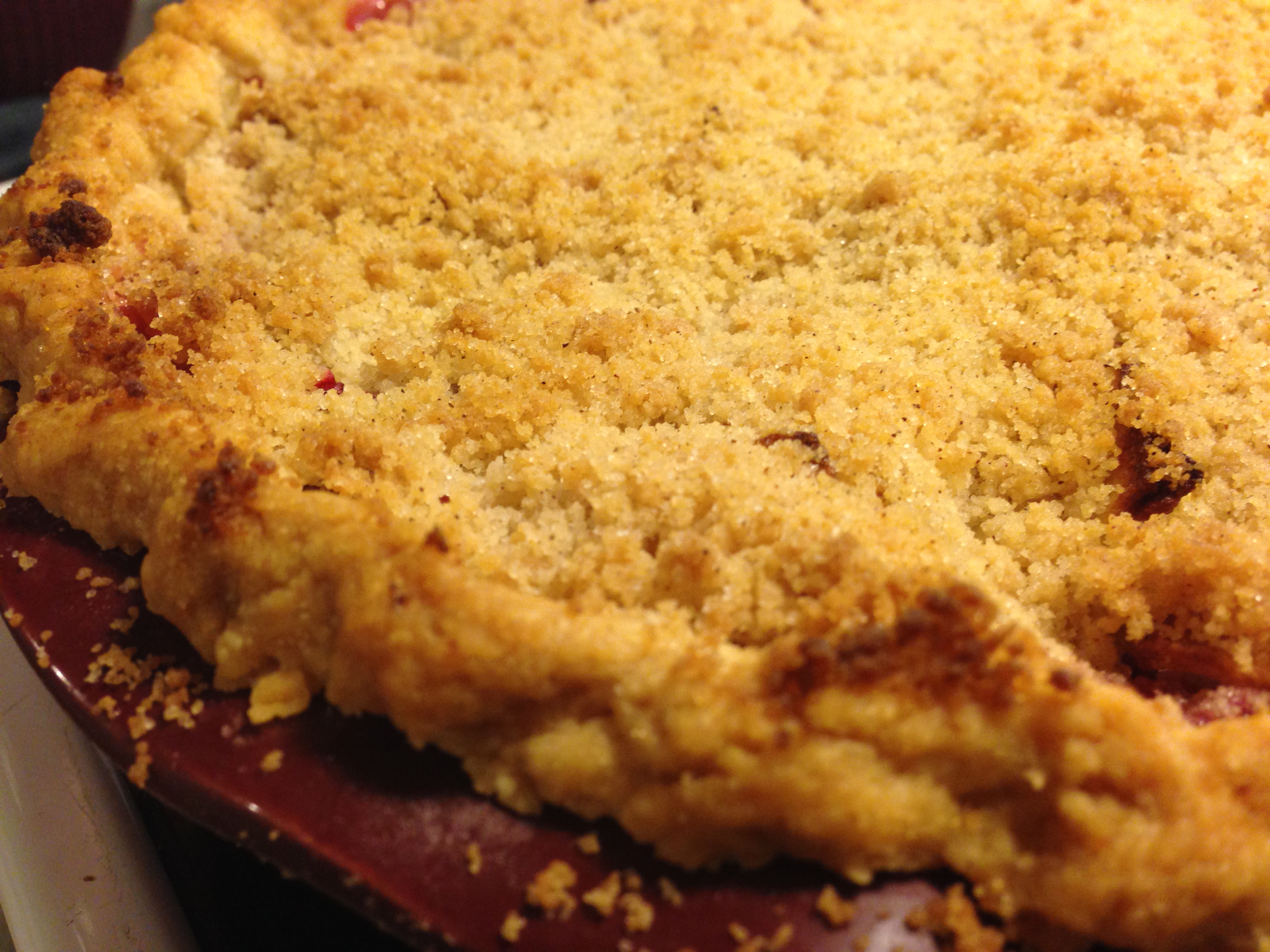 Rub butter into dry ingredients til coarse crumbs form. Top pie with crumbs and return to oven at 375 for 30 minutes. Allow pie to cool before serving.