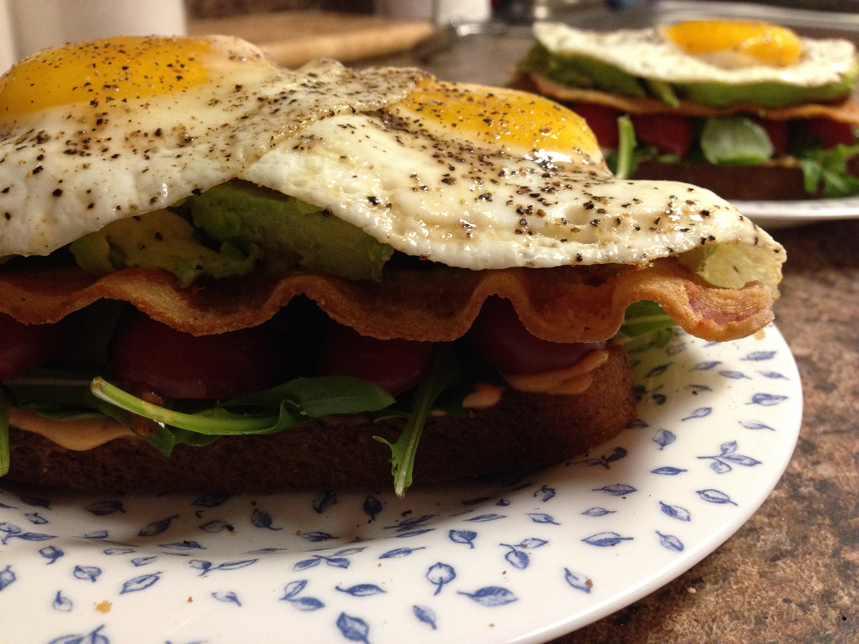 Now, a BLT with Sriracha mayo would be great, and you could totally stop there and be fine. But I have no self control and also happened to have a ripe avocado in my hot lil hands, and you can bet your bottom dollar that went in this bad boy. AND since there was both bacon and avocado in this sandwich, it only seemed right to toss in the last member of the holy trinity: a fried egg. I’m not a monster, people.