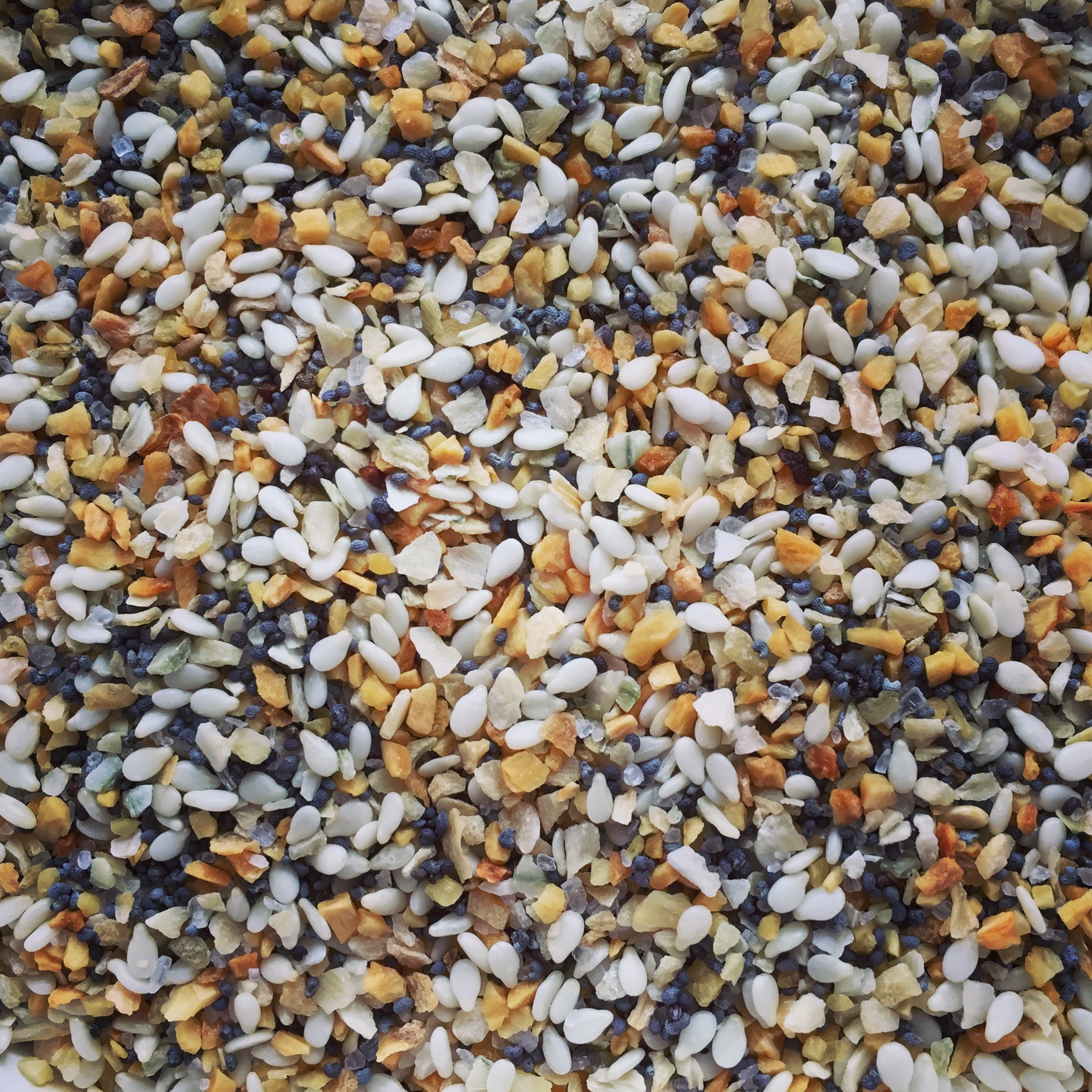 - 1 T. each: Poppy Seeds, Sesame Seeds, Dried Onion, Dried Garlic