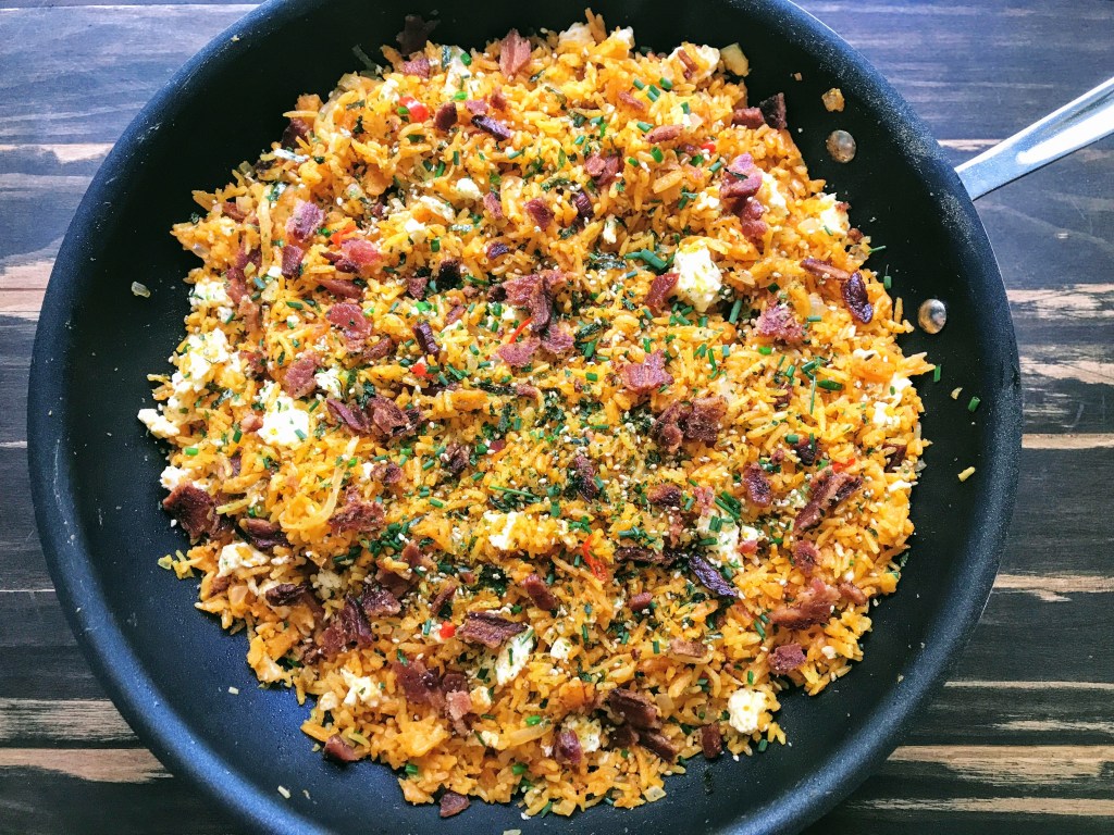 But as good as those Nigerian-Indian fusion lunches were, there’s no disputing that the single best thing I managed to do with my bevy of leftover jollof rice was to make fried rice with it for our weekend brunch. Fried rice is great all the time, with lots of kinds of rice. But starting with super-flavorful jollof rice gives you approximately 5 zillion legs up by the time you sit down to eat. Toss a little bacon in there to make it “breakfast”-ier and you have yourself a meal that nobody will be bummed about, I promise. In hindsight, I should’ve written this post immediately after eating the fried rice, because now I’m just unspeakably sad I’m not currently eating it. Guess it’s time to start another pot of jollof!