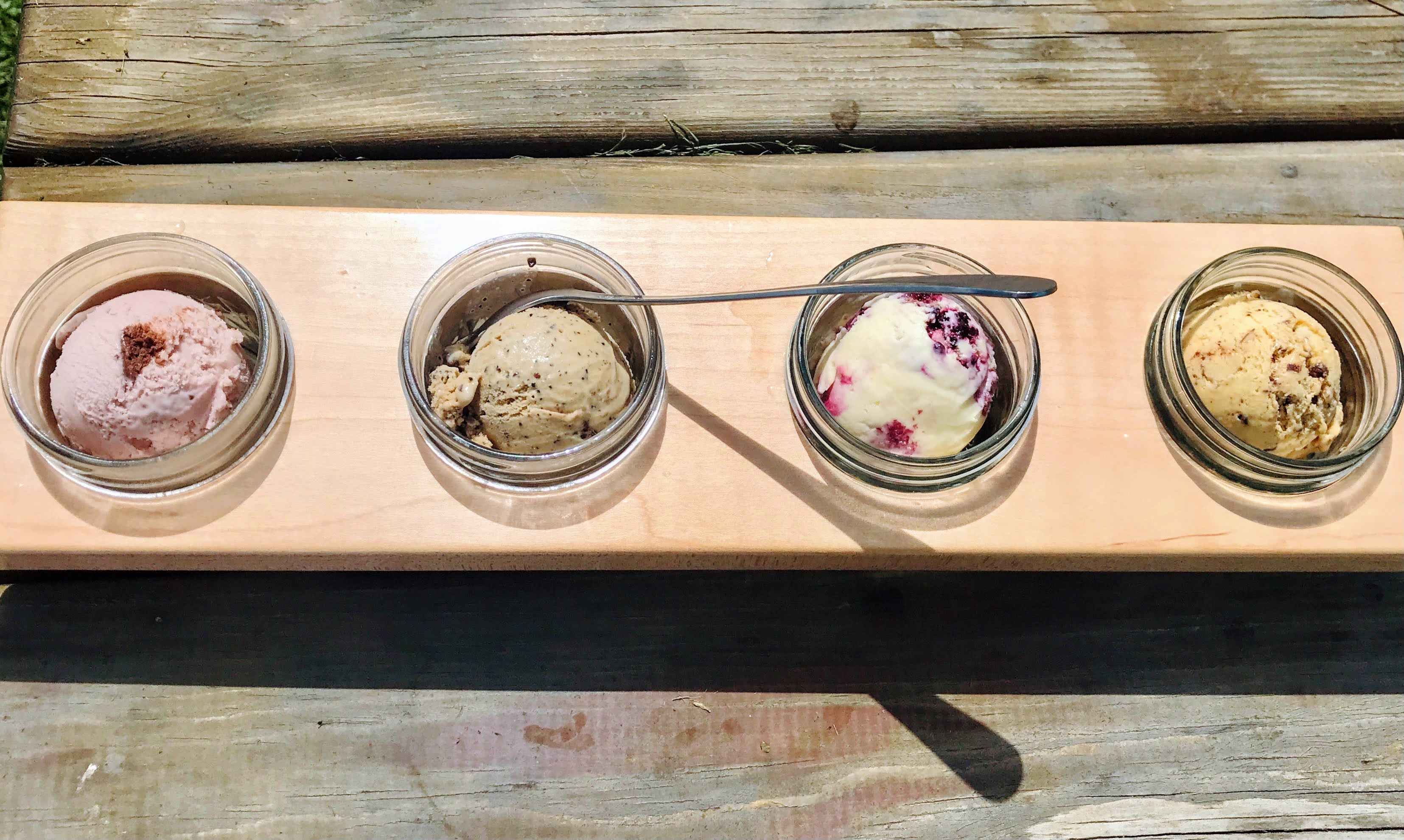 - Romaine salad with cucumber, gorgonzola, and peach jam vinaigrette, with ciabatta topped with butter, sliced radish, and flaky salt