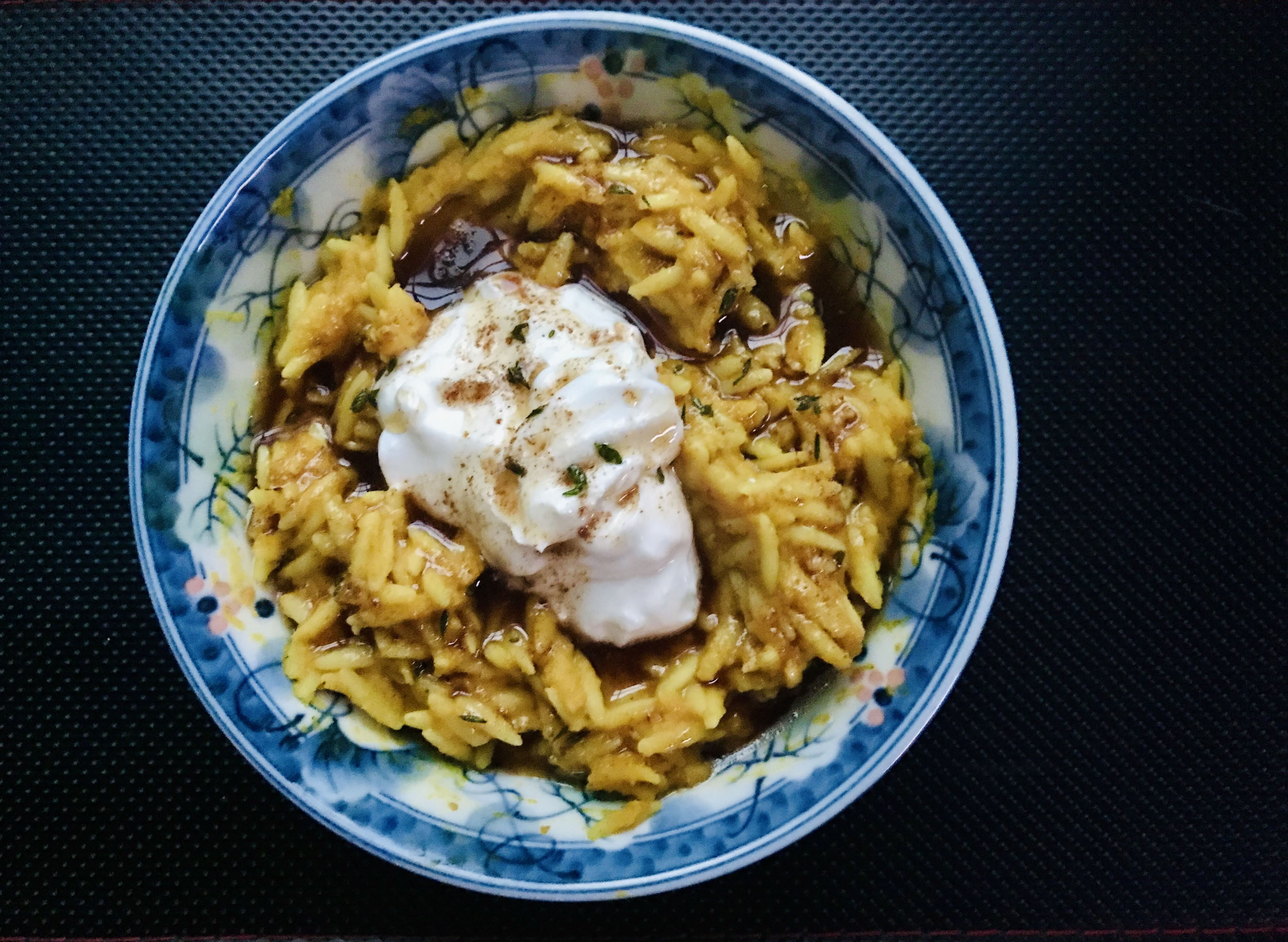 - Cauliflower-pumpkin orzo with salty yogurt and garlic-thyme browned butter